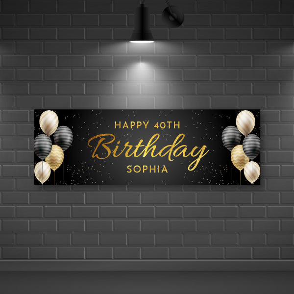 Personalised Black Gold Sparkle Birthday Banners - Custom Name & Age